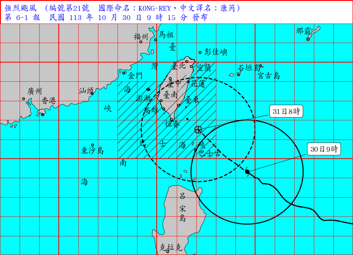 根據氣象署最新資料顯示,第21號颱風康芮已增強為強烈颱風,氣象署已發布海上陸上颱風警報,花蓮縣已列入警報範圍,目前颱風中心在鵝鑾鼻東南方海面,以每小時15轉20公里速度向西北移動,玉里鎮公所已於上午9時開設二級災害應變中心。