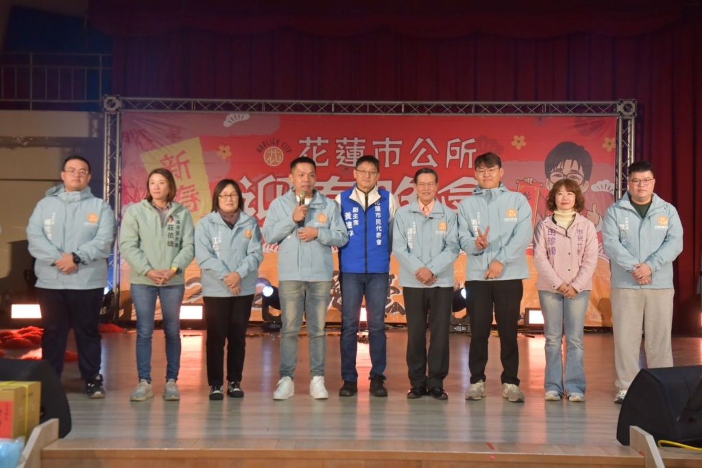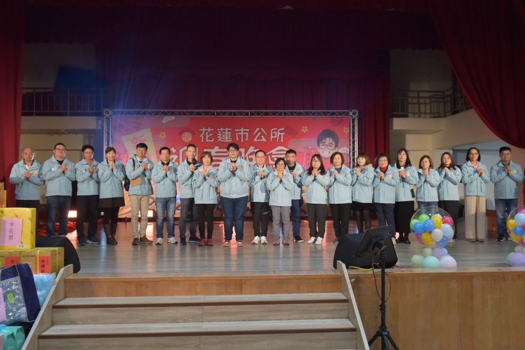 魏嘉彥與主秘翁美華以及各課室所主管共同向在場所有同仁致意,魏市長表示,歲末年終之際,感謝一年來全體員工以及各個協力單位的努力,展現花蓮的韌性與溫暖,同時創造許多精采,未來不僅要將愛花蓮的精神持續傳承之外,市公所也將持續貼近民意,照顧有需要的群眾,新的年度,期許展現團結,接續為花蓮市民開創福祉。