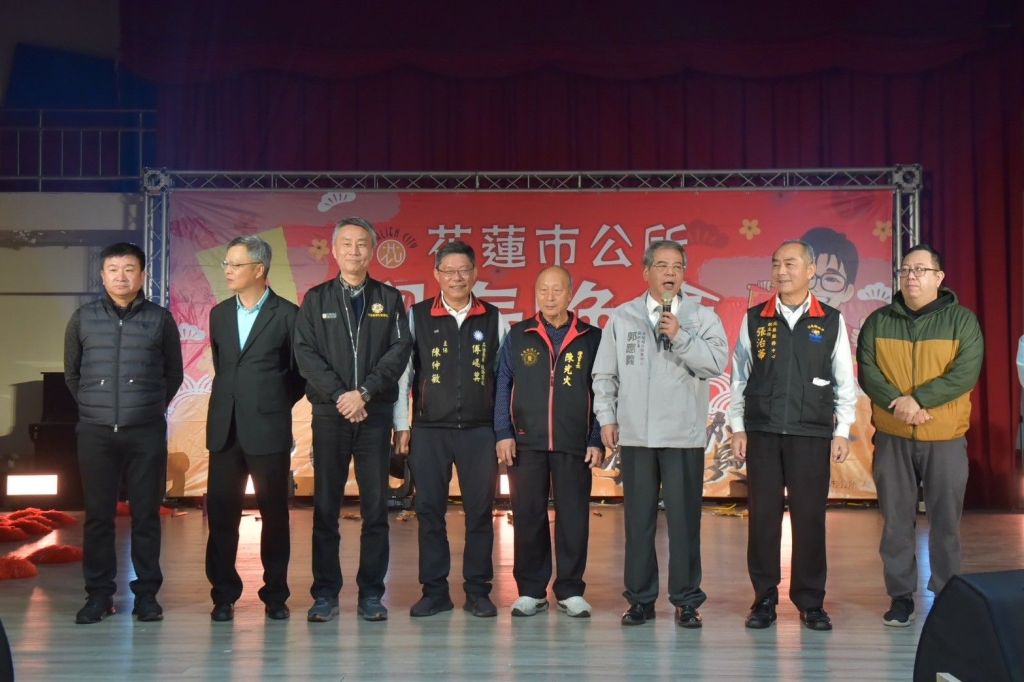 歲末聯歡餐會席開64桌,市公所以及所屬機關人員都齊聚一堂,花蓮市立幼兒園教師群也組成STAR GIRLS帶來熱舞,場面相當熱絡。活動受到各界支持響應,提供豐富摸彩品與公所員工同樂,現場更結合資源回收宣導活動,進行有獎徵答外,加強宣導飲酒不開車。