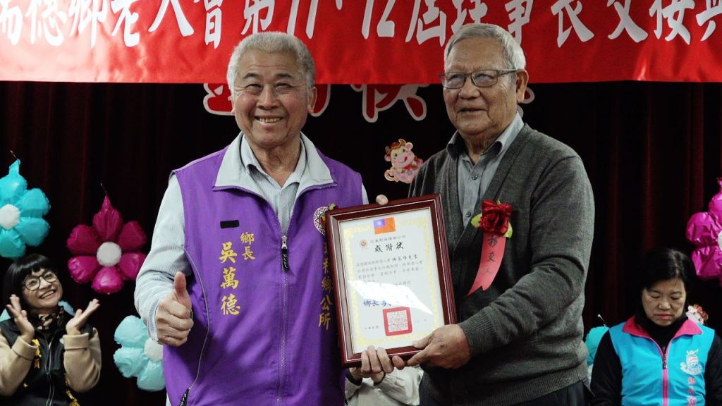 鄉長吳萬德頒發感謝狀,感謝卸任理事長林永峰四年來為推動鄉內長者互助事宜,無私付出勞苦功高,並期許新任理事長范姜秀春帶領下,會務蒸蒸日上,每位長輩都能身體健康,平安喜樂。