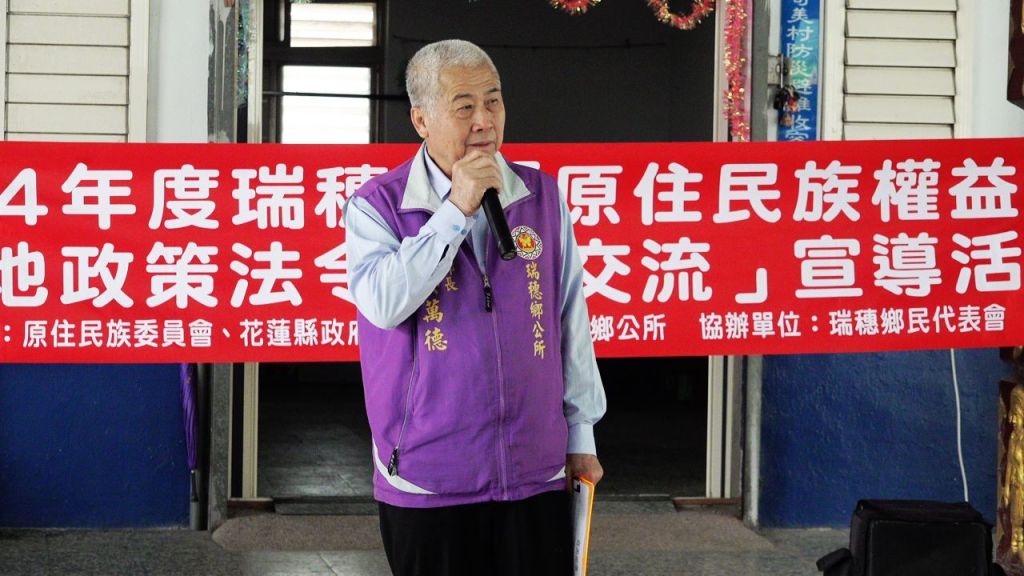 爲了有效推展原住民族各項福利措施及相關政策法令,提升族人對自身權益之意識及權益維護,瑞穗鄉公所自2月18日至27日,分別在瑞美、瑞北、富民、鶴崗、舞鶴、瑞祥、奇美村舉辦了本年度「原住民族權益及土地政策法令意見交流」的宣導活動,共七場次。