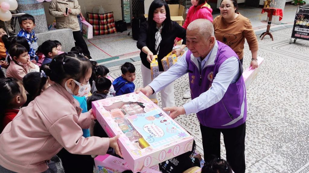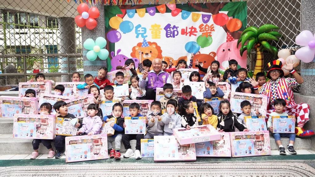 瑞穗鄉公所為迎接歡樂兒童節,鄉長吳萬德於3月31日率服務團隊,前往鄉立幼兒園贈送幼兒們開心小禮物「玩具禮盒」,幼兒們接獲鄉長的禮物,臉上露出了天真無邪的笑容。