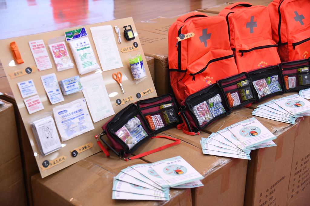 此次發表的緊急避難包為雙肩背包,選用顯眼橘紅色並搭配反光警示設計,提升辨識度。背面印有「緊急避難包應常備物品清單」,內附「緊急避難包物品檢核表」,提醒民眾定期檢視內容物,以確保隨時可用。緊急救護包則為小型收納包,內含LED手電筒、三角巾、OK繃、酒精棉片、彈性繃帶、傷口敷料、透氣膠帶、爆音哨及保溫急救毯等基本急救用品,以利災害發生時進行緊急包紮、止血及求救,提升自救與互救能力。