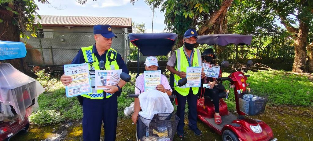 西林派出所副所長謝光輝於日前偕同山警小隊長高保祿、副小隊長謝光亮前往西林村部落感恩祭會場,向村民及年長者宣導交通安全觀念,並提醒即將於7月18日上午10時至10時30分舉行的城鎮韌性防空演習及反詐騙知識,獲得現場熱烈迴響。