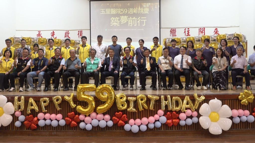 14年8月29日,玉里醫院展開「59週年院慶慶祝大會」,邀請各界貴賓與媒體朋友一同見證玉醫團隊的努力與成果。典禮從復健學員的祥獅獻瑞熱鬧揭開序幕,緊接著大家長簡以嘉院長暨來賓致詞、同仁表揚、職能成果表演展示與感恩儀式,最後在全場嘉賓的見證下進行切蛋糕儀式,象徵玉里醫院邁向下一個里程碑,現場洋溢著喜悅氛圍。