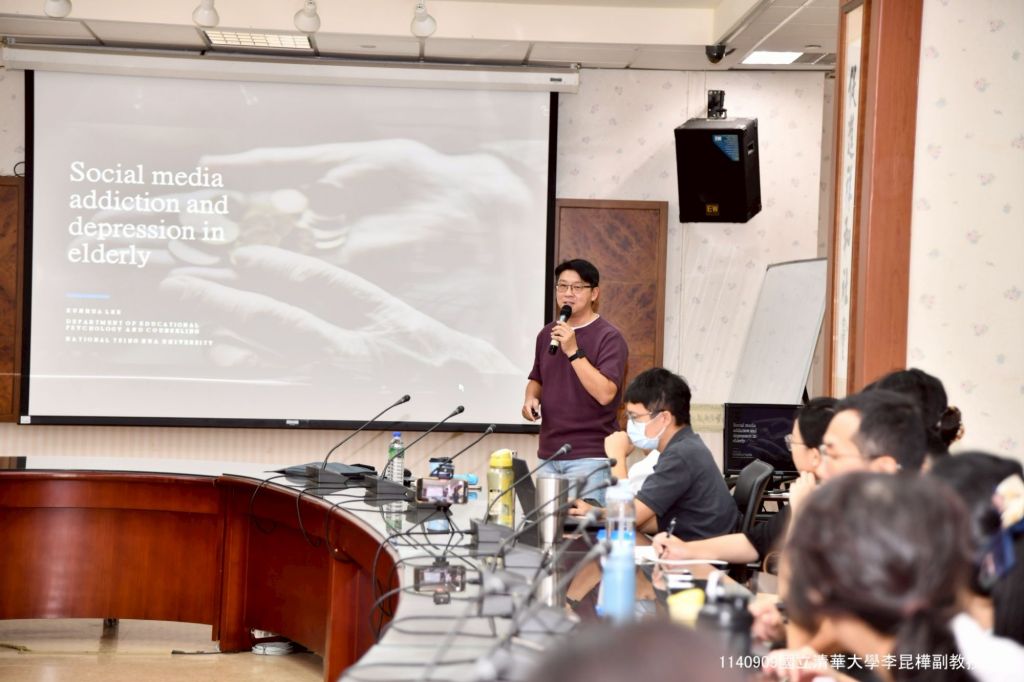 李昆樺副教授長年投入網路成癮的臨床研究與防治工作,專長涵蓋成癮心理學、數位世代行為模式及治療策略。講座中,他深入解析網路成癮的形成機制、行為特徵與相關理論基礎,並強調:「網路本身不是問題,關鍵在於使用方式與時間分配」。他指出,有效防治需結合認知行為調整與家庭支持系統,才能協助個案建立健康的網路使用習慣,並提出如何透過遊戲化與互動式教學活動,提升民眾和學生們對網路使用的覺察,減少成癮風險。