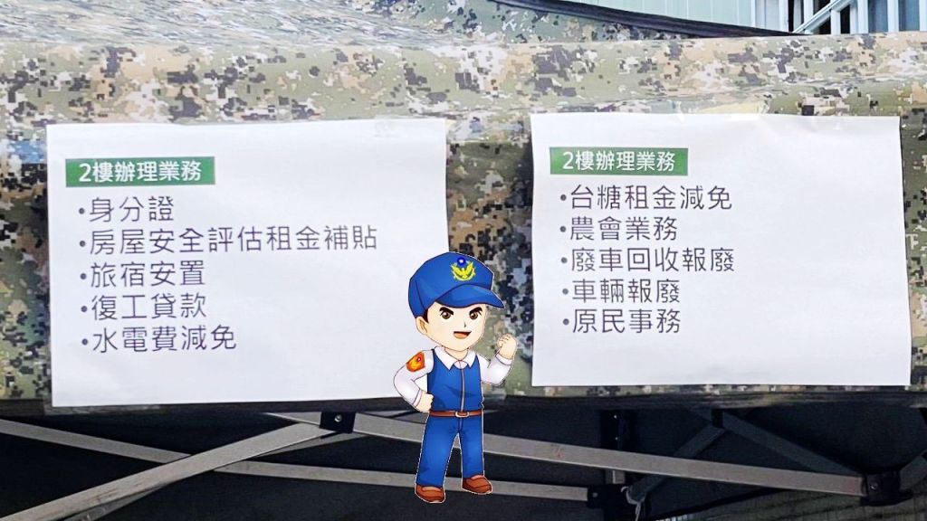 該平台設於花蓮縣光復鄉中正路一段132號中華電信光復服務中心,服務時間為10月7日至10月12日每日上午8時至下午5時。鳳林分局表示,災區民眾湧入申請,可能增加治安風險,分局已調派警力加強該區域巡邏,防範竊盜、詐騙及交通違規等不法行為,並與前進指揮所及地方單位聯防,保障志工、災民及服務人員安全。