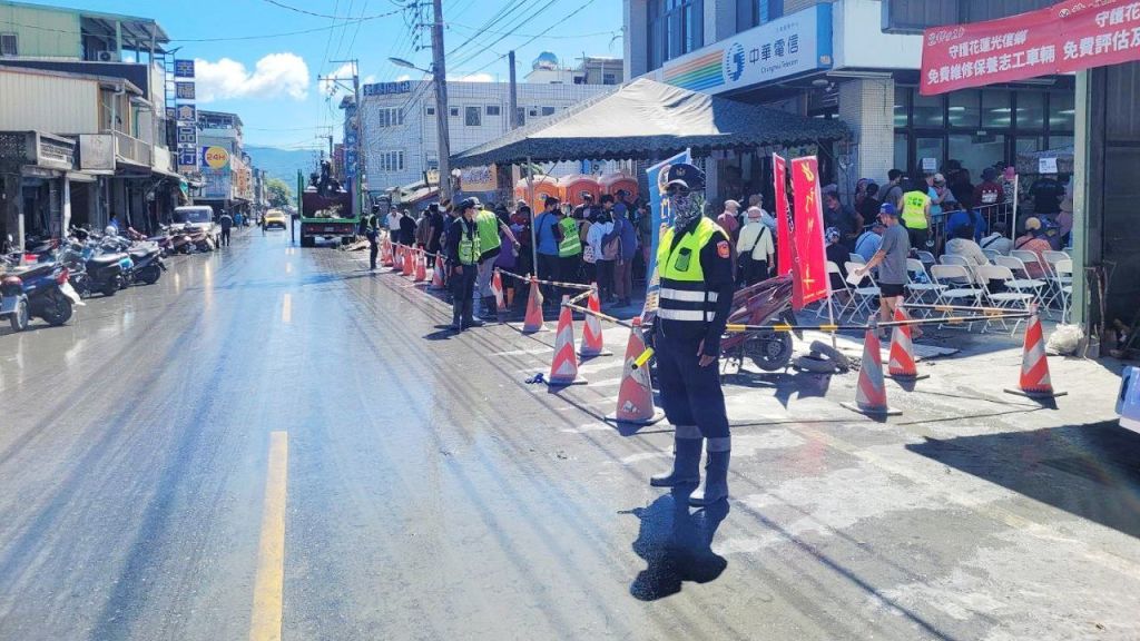 鳳林警分局強化平台周邊巡邏勤務,維護平台周邊治安秩序,確保災民安全申請權益。