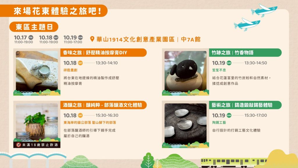 就讓「East of Taiwan」帶著花東的美好走進華山,從山到海、從手作到美食,用一場市集串起花東生活的靈魂。10月17日至19日,誠摯邀請民眾共赴這場東台灣限定的秋日盛會!