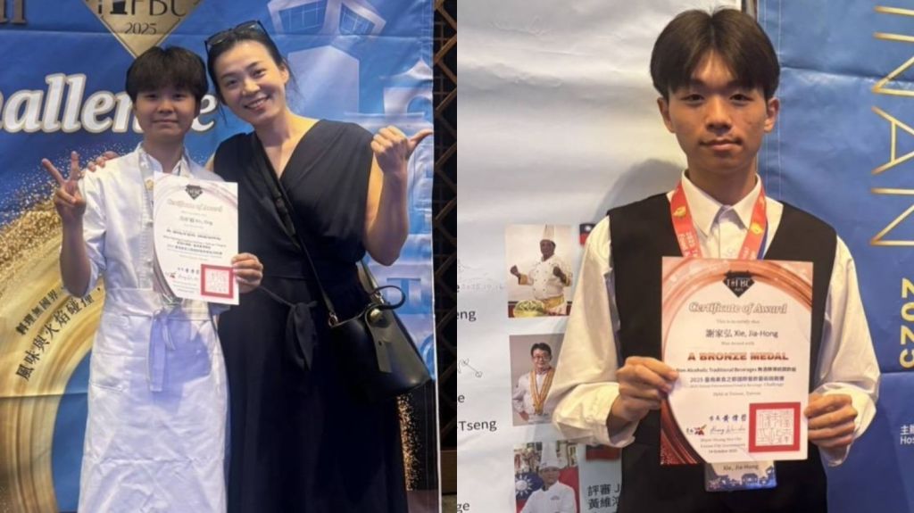 餐酒指導老師江悅瑩主任表示:「這次比賽真的不容易,學生們平時主動留下來勤奮練習,過程中最大的困難是經費。在有限的經費下,我們必須精準使用材料,避免浪費。學生們也需要不斷用想像的方式去揣摩味道與口感,能夠堅持到最後一刻,順利在時間內完賽,最後站在舞台上接受頒獎,讓我們感到非常感動。」