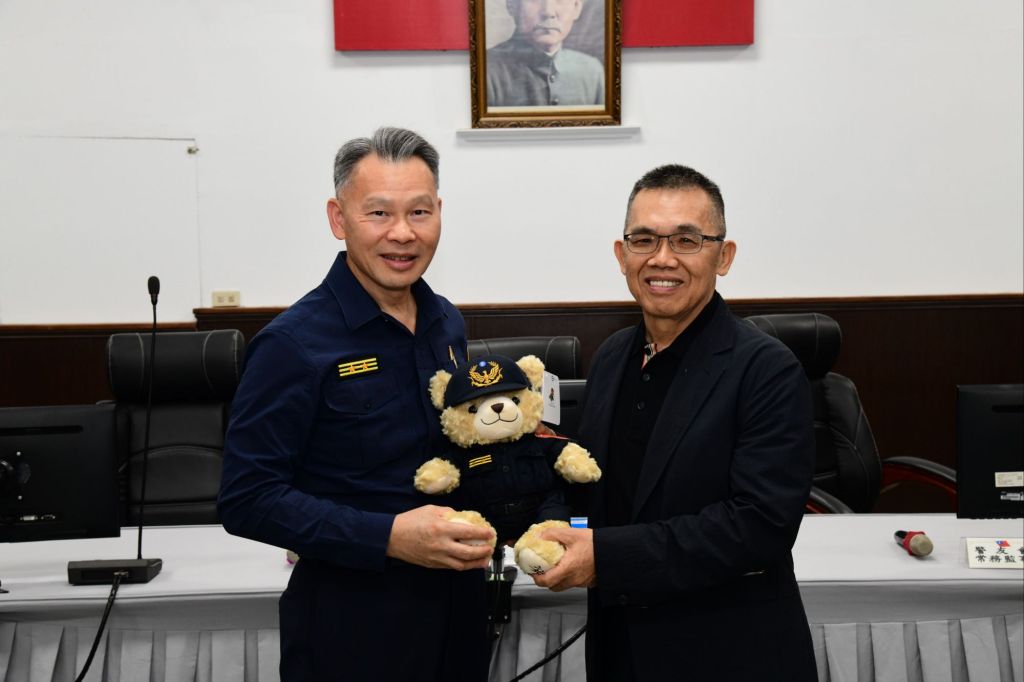 劉常務監事表示,感謝花蓮縣警察局在本次「樺加沙」颱風災後期間,於救援及治安維護工作中全力投入,展現高度的專業與奉獻精神,辛勞與付出有目共睹,並期勉所有執勤同仁持續保重身體、平安順遂。會中,花蓮縣警察局局長陳百祿也特別致贈象徵警察精神與榮耀的「警察熊娃娃」予劉常務監事,以表達對警察之友會長期支持與鼓勵的誠摯感謝。