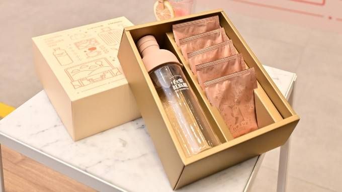 禮盒包裝設計則以俏皮流暢線條描繪旅行元素,營造輕盈自在、和諧溫暖的氛圍,呼應「自然茶旅」的輕旅行概念。它象徵一種自然而然的生活態度:將喝茶融入日常,不刻意、不做作,與環境和諧共處,如同臺東純粹真摯的生活方式,也成為新式茶飲的理想送禮選擇!