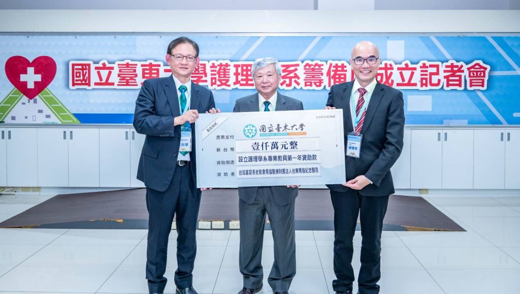 記者會由國立臺東大學鄭憲宗校長率領一級主管出席,在立法委員陳瑩、中央研究院院士梁賡義、縣議會議長吳秀華,臺東縣政府盧協昌秘書長、台灣基督長老教會馬偕醫療財團法人蕭聰穎董事長、馬偕紀念醫院總院陳治平副總院長、台東馬偕紀念醫院王光德院長、臺東縣醫師公會何活發理事長、醫療財團法人南迴基金會李靜蘭董事長等產官學界代表的共同見證下,隆重為護理學系揭牌。蕭聰穎董事長今日更履行合作備忘錄的約定,資助護理學系第一年的設備費一千萬整,象徵雙方攜手為臺東培育醫護人才的重要里程碑。