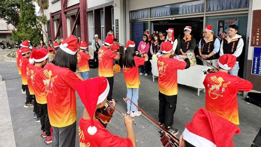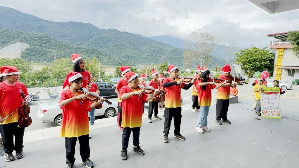 活動中,明里國小學生以小提琴演奏多首耳熟能詳的聖誕樂曲,悠揚旋律在公所前迴盪,讓現場民眾與員工彷彿提前感受聖誕節的喜悅與祝福。孩子們專注投入的表演,展現純真與自信,也讓在場人員紛紛停下手邊工作,投以熱烈掌聲。