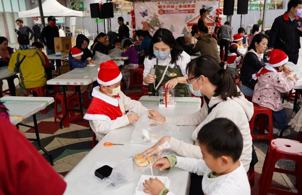 活動在水晶老師團隊帶來的精彩暖場表演中熱鬧揭幕,隨後展開一系列親子同樂內容。闖關市集結合趣味與教育,民眾完成集點任務即可兌換百元美食券,在甜點、零食及飲品攤位中享受美味;家庭趣味競賽則分為「幼兒組」、「學齡組」及「成人組」,透過默契挑戰,讓不同年齡層的家庭成員在歡笑中培養合作與信任,增進彼此情感連結。親子手作活動以創意薑餅屋為主題,大小朋友攜手打造專屬的聖誕祝福,現場充滿溫馨氣氛。