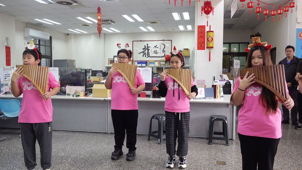 活動中,舞鶴國小學生以排笛演奏多首耳熟能詳的聖誕樂曲,悠揚旋律在公所大廳中迴盪,並搭配精心編排的慢舞與清亮歌聲,讓現場民眾與員工彷彿提前感受聖誕節的喜悅與祝福。孩子們專注投入的表演,展現純真與自信,也讓在場人員紛紛停下手邊工作,投以熱烈掌聲。