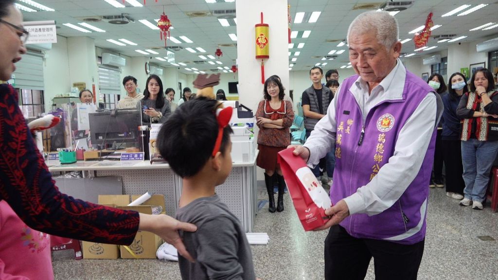 為回應孩子們的用心,瑞穗鄉公所也準備了精緻的聖誕小點心,由鄉長吳萬德親自分送給每位到場學生,孩子們收到禮物後驚喜不已,臉上洋溢幸福笑容。