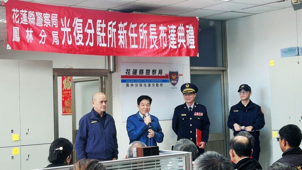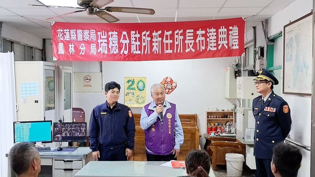 花蓮縣警察局鳳林分局於12月30日分別在光復分駐所及瑞穗分駐所舉行新任所長布達典禮,儀式過程簡單而隆重。典禮當日,轄區縣議員、鄉長、鄉民代表、村里鄰長、地方士紳以及民力幹部等皆受邀到場觀禮,共同見證基層警政重要人事異動,展現地方對警政工作的高度重視與支持。