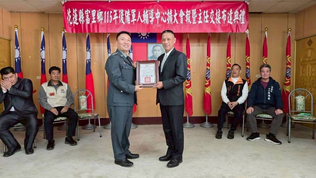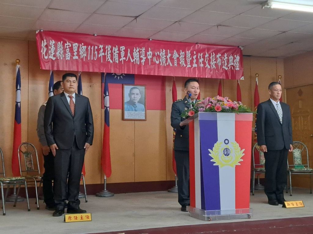 今(01/16)是富里鄉輔導中心原、新任中心主任交接典禮的好日子,很榮幸能主持此一盛典,原任林俊傑主任,任職中心主任期間,協助地方政府,建立清楚、 順暢的溝通與合作機制,投入災害防救其能力及表現均獲各級幹部讚揚,希望林俊傑主任卸任後秉持『一日後備、終生後備』精神,繼續提供工作經驗,以造福後備袍澤。