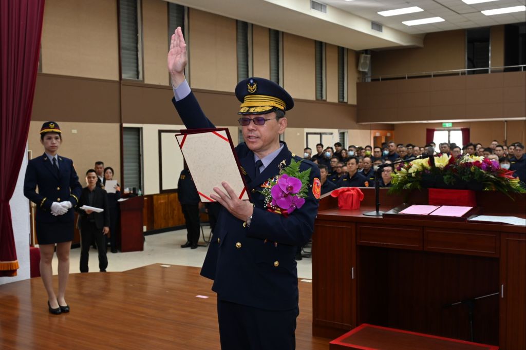 隨後,縣長介紹新任局長范織坤。范局長為中央警察大學60期行政警察學系畢業,並取得中華大學經營管理研究所碩士學位,歷任臺北市政府警察局文山第二分局、信義分局及大安分局分局長,以及內政部警政署保安組副組長、組長等重要職務,內外勤歷練完整,工作表現深受肯定。