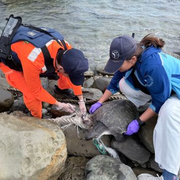 海龜遭網纏繞受傷 臺東海巡疾赴協助脫困