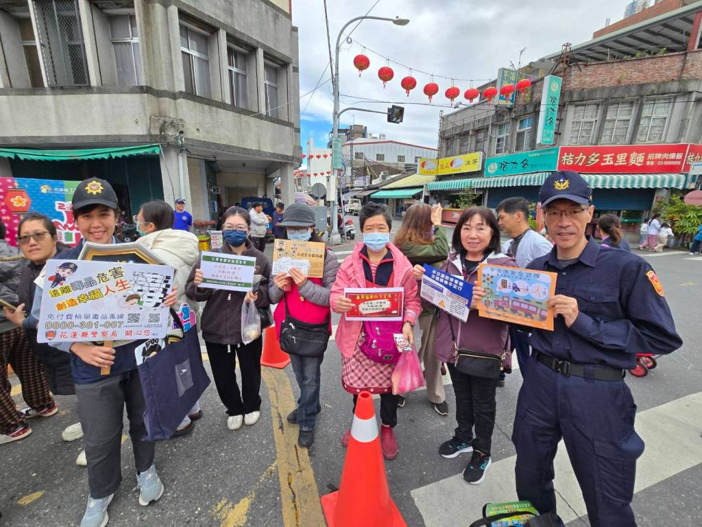 鐵路警察局花蓮分局玉里派出所為辦理115年加強重要節日安全維護工作,特別前往玉里年貨大街活動會場向往來民眾宣導「防詐、防竊、防搶」、「年節反貪、反腐」及「鐵路交通安全」宣導,讓民眾能獲取預防犯罪、交通安全最新法規及政令宣導,提升自我保護意識。