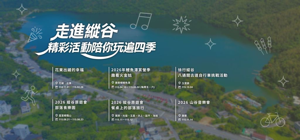 活動雖已結束,花東精彩四季仍將接力登場。春季「鯉魚潭趣看火金姑」賞螢活動、夏季「縱谷原遊會部落食樂園」、金針花季、秋季自行車挑戰及冬季山谷音樂會等系列活動將陸續展開,邀請旅人隨著季節腳步再訪縱谷風光。