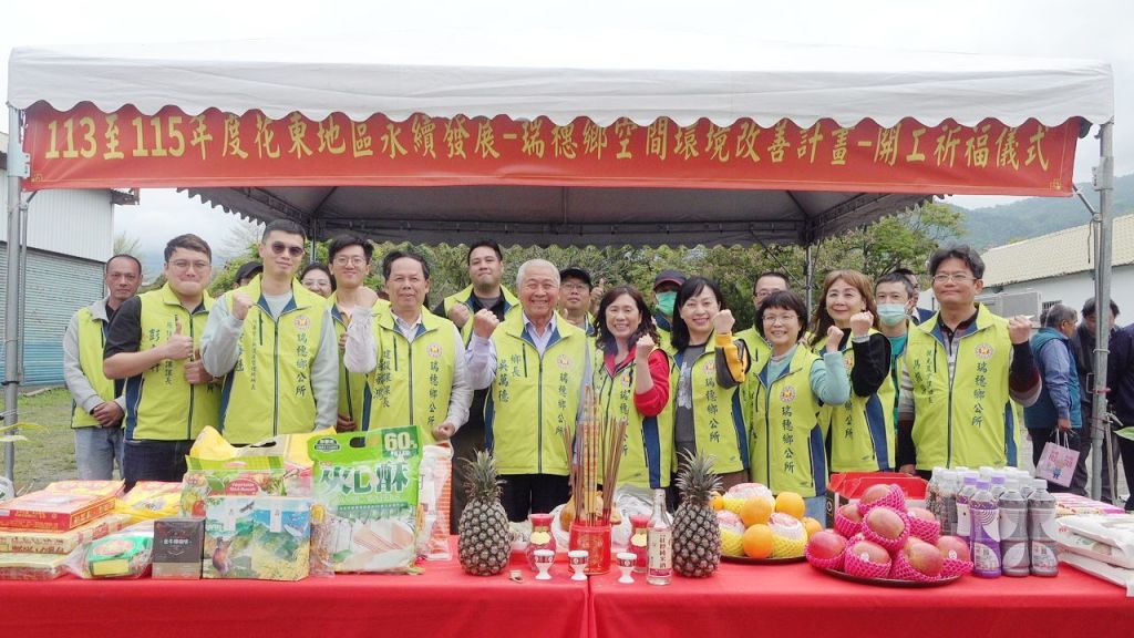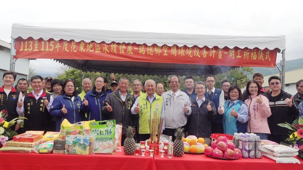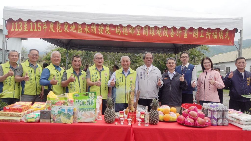 為提升地方公共空間品質與交通便利性,瑞穗鄉公所積極推動「瑞穗鄉空間環境整體改善計畫」。今(11)日上午,鄉長吳萬德率領公所團隊,會同工程施工廠商、地方民意代表及各級長官,於瑞穗火車站前舉行「瑞穗鄉空間環境改善計劃」開工祈福儀式,宣告工程正式啟動。