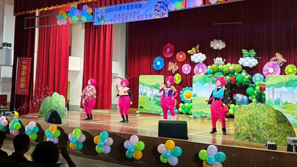 為迎接115年度兒童節,瑞穗鄉公所於今(25)日上午,假瑞穗國中舉辦「2026花蓮兒童藝術節-國小暨幼兒園聯合歡樂嘉年華」活動,由文化局安排知名蘋果劇團演出《奇奇的冒險日記》;透過生動活潑的劇情與富有創意的舞台表現,帶領孩子進入奇幻的故事世界,現場笑聲與掌聲不斷,讓大小朋友沉浸在藝術所帶來的歡樂氛圍之中。