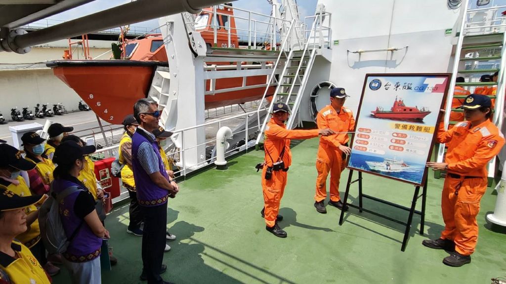 隨後,一行人登上海巡艦艇「臺東艦」,實地參觀船艦內部設施與勤務配置。透過海巡人員的說明,志工們了解各項裝備的用途及執勤流程,對海巡人員在惡劣海象下執行巡防與救援任務的辛勞有了更深刻體會。志工們紛紛表示,此次參訪不僅拓展視野,也更加體認海洋安全與國家防護的重要性,對長年守護海疆的海巡人員深感敬佩。