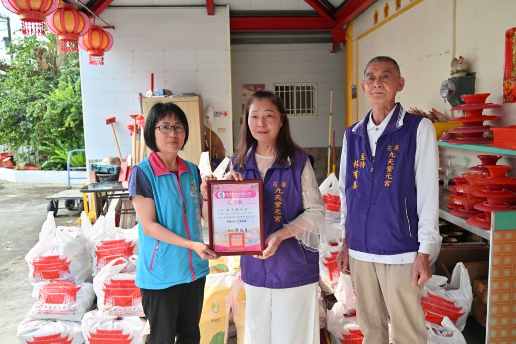 吉安鄉紫元宮於3月7日為濟助弱勢並響應鄉長游淑貞照顧弱勢與推動社會福利與服務工作,捐助483斤白米與90份綜合物資,由鄉公所社會課長何書咏代表接受並回贈感謝狀給宮主沈秀蘭,相關物資將由公所社會課造冊,分贈給鄉內弱勢家庭,幫助家戶生活。