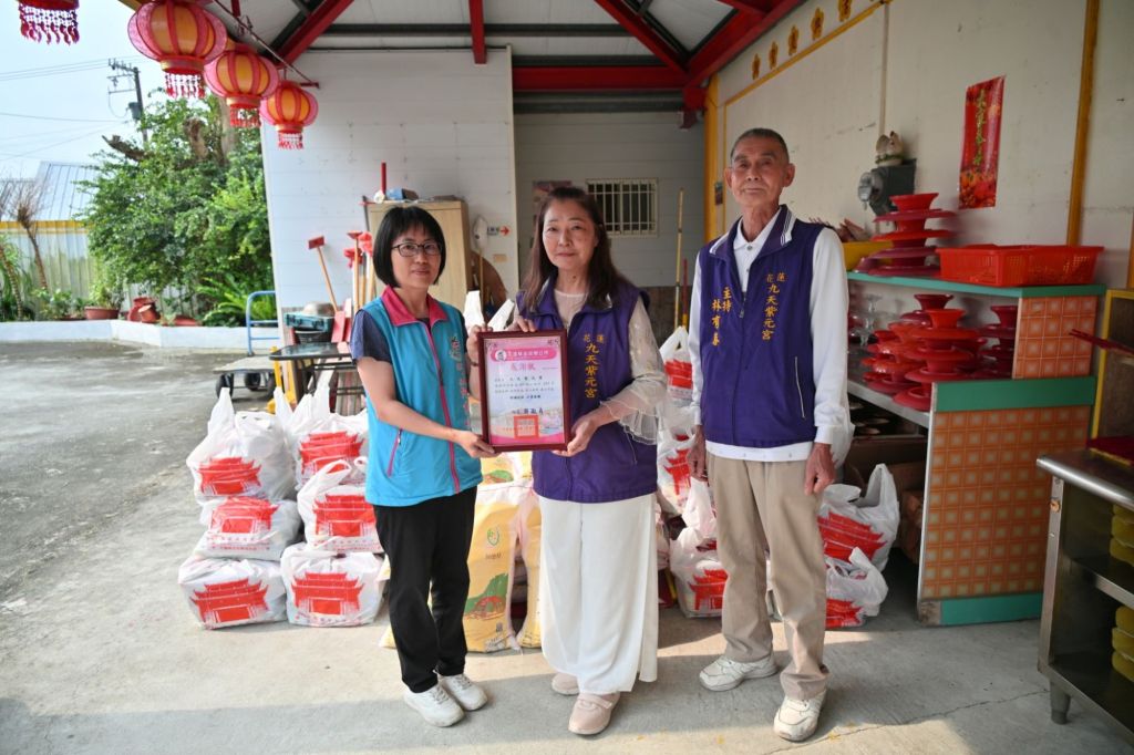 九天紫元宮主持林有春表示,捐贈物資給鄉內弱勢,是宮裡長期在做的工作,也因為看見鄉長游淑貞很辛苦地推展各項社會福利工作,所以將宮裡大德留下來的愛心,贈送給鄉公所,與鄉長游淑貞一起共襄盛舉,幫助弱勢。林有春指出,每年的聖誕祭典後,許多信眾會留下一些愛心物資,紫元宮為善加利用信眾的愛心,將這些愛心物資捐贈給鄉公所,以響應鄉長游淑貞與鄉公所努力推動社會福利、幫忙弱勢的作為。紫元宮共捐助483斤白米、90份包含米、麵、醬油等綜合物資。