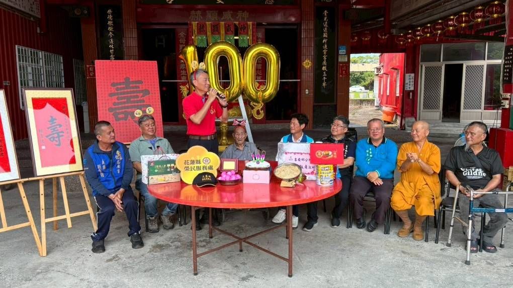 在春意盎然的時節裡,花蓮縣榮民服務處今(16)日於吉安鄉光華村龍華慈安宮廣場,為百歲榮民李興智爺爺舉辦一場溫馨感人的慶生活動,親友鄰里齊聚一堂,在滿滿祝福聲中,共同為這位走過百年歲月的長者慶賀,場面洋溢著濃濃人情味。