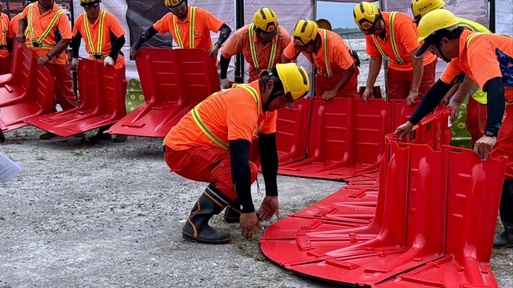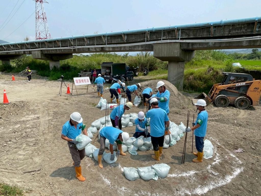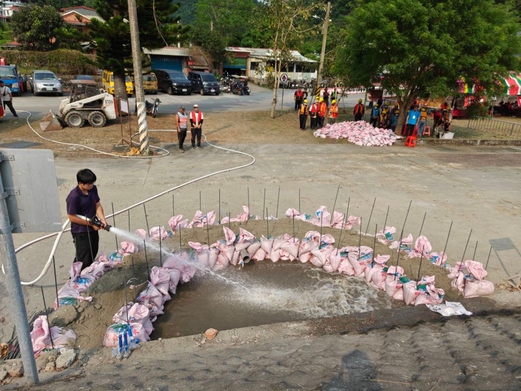 此外,本次演習亦同步驗證多項防汛搶險工法,包括移動式抽水機佈設與強制排水作業,提升低窪地區即時排洪能力;沙包堆置及防水擋板設置,以分層阻隔方式防止洪水入侵;運用太空包填充砂石作為臨時堤防,強化短期防護量能;河道導流及臨時截流措施,分散水流壓力降低溢堤風險;邊坡防護與土石流緊急穩定工法,透過帆布覆蓋及簡易固定降低崩塌機率;以及道路搶通與緊急便道開設,確保救災及疏散動線暢通,全面提升現場應變效率。