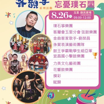 【台灣即時報】記者 林鳳珠/花蓮報導 「忘憂璞石閣」活動邀請對音樂充滿熱情與堅持的知名鼓藝團隊「花響鼓樂團」、 … More 縱谷客韻季「忘憂璞石閣」 8月26日玉里登場